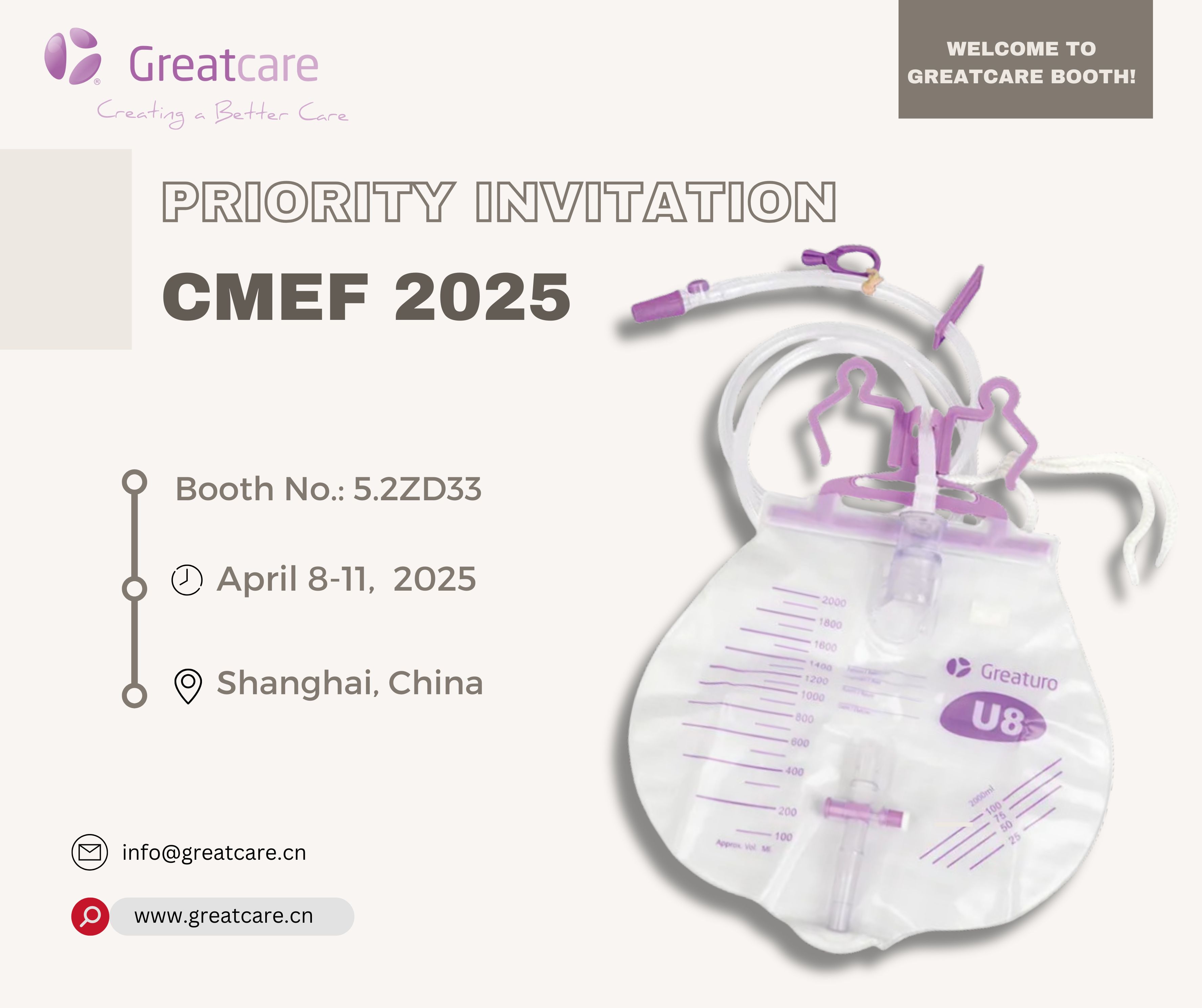 GreatCare sangat senang mengumumkan partisipasinya dalam CMEF 2025. Selama pameran empat hari, GreatCare's Booth (stan no.: [5.2ZD33]) menarik pengunjung dari Asia, Eropa, Timur Tengah, Amerika, dan wilayah lainnya. Perusahaan ini memamerkan berbagai kantong urin yang diproduksi sendiri, kantong drainase, sabuk elastis, masker wajah, dan bahan habis pakai medis lainnya. Banyak dari produk ini telah disertifikasi dengan CE, ISO 13485, FDA, dan banyak digunakan di rumah sakit, lembaga keperawatan, dan pengaturan perawatan kesehatan di rumah.